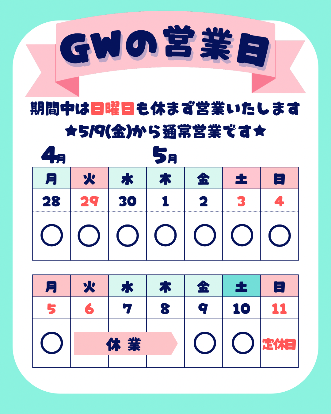 | 定休日 | 定休日は日曜日のみ! ★祝日も営業★ |