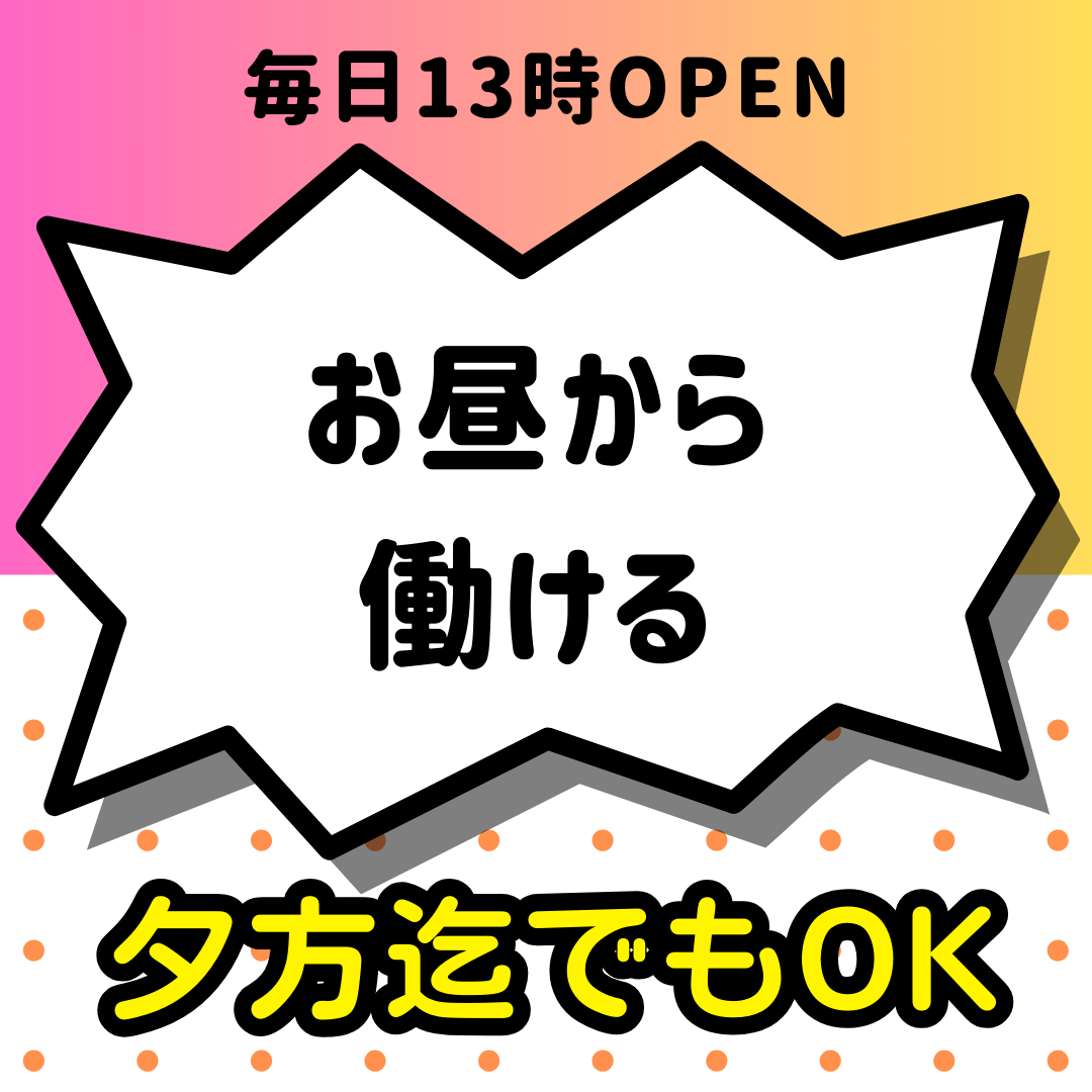 | 待遇 | ◆日払いOK ◆各種手当有り ◆未経験者大歓迎 ◆経験者優遇 ◆お酒が飲めなくても大丈夫(ノンアルドリンク有り) ◆学生、OL、フリーター、主婦、Wワーク大歓迎 ◆週1日から出勤OK ◆週末のみ、平日のみの出勤大歓迎 ◆好きな日、好きな時間にバイトできます ◆自由シフト制 ◆短時間でも勤務可能 ◆終電上がりOK ◆送迎あり ◆体験入店大歓迎 ◆髪型・ネイル自由 ◆無料レンタル衣装有り ◆私服勤務可 ◆ヘアメイク不要 ◆駅チカ(徒歩五分圏内) ◆扶養対策あり ◆インボイス対策あり ◆Wワーク対策あり ◆友達同士のご応募も大歓迎♪ ◆レギュラー勤務歓迎♪ 未経験だけど興味がある! 楽しいお店で働きたい! そんな方も大歓迎♪ お気軽に問い合わせください♪ |