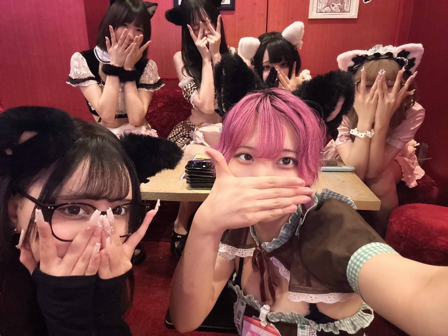 必ず猫ちゃんがお席に着きます!!! 当店では風営法を取得させていただいておりますので、他のコンカフェさんで多く聞く、女の子が席につかないなどは一切ございません。 心行くまでお楽しみください😋😋
