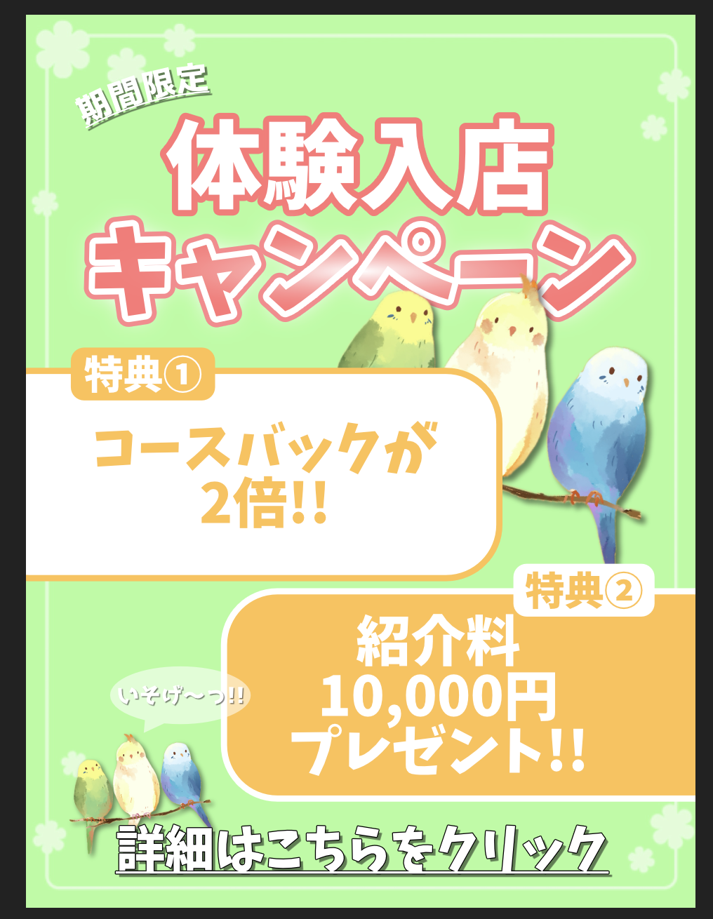 体験入店時のコースバックが2倍!!!!🌟