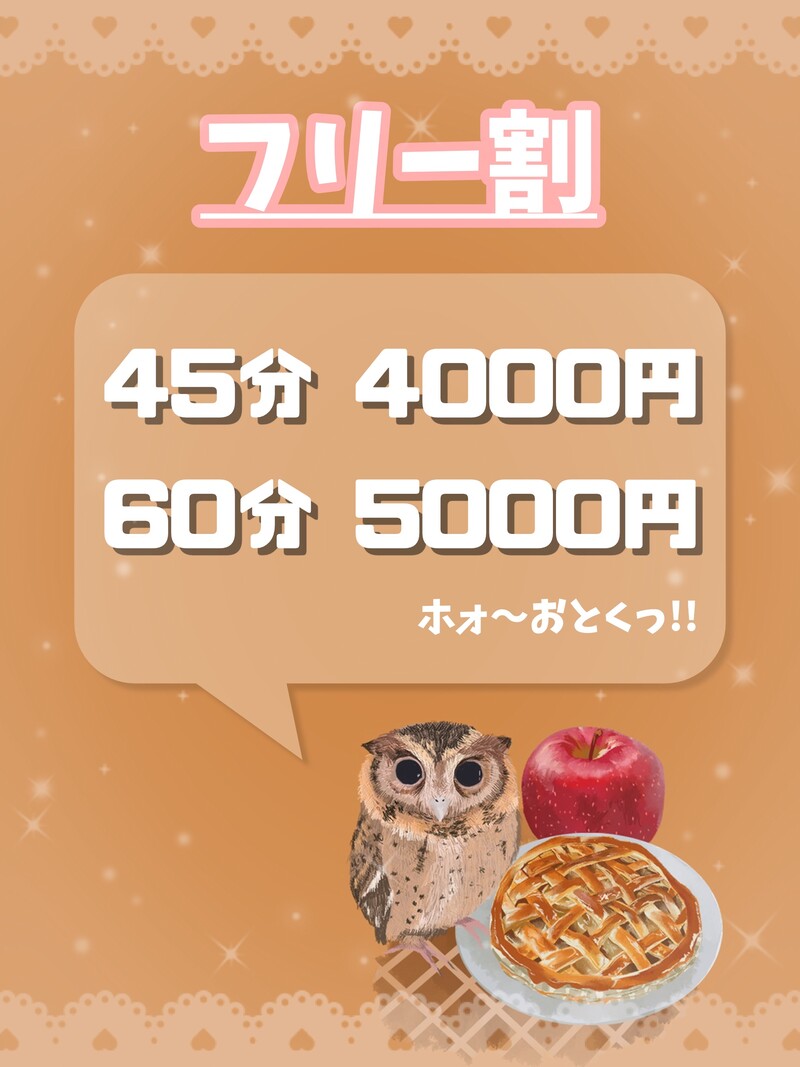 60分コース(指名)/コースバック ¥2000-→¥4000-