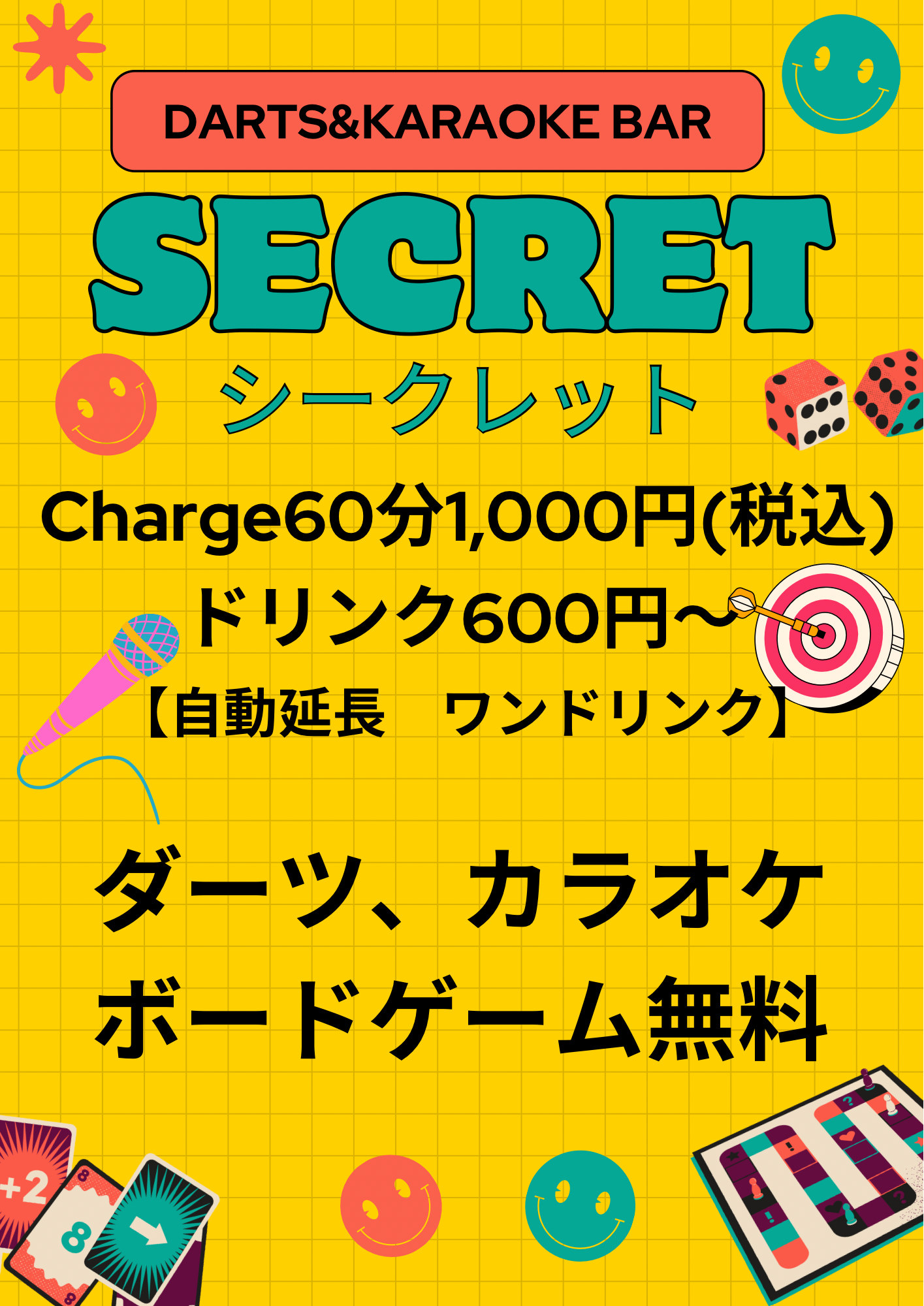 | 店名 | ダーツ&カラオケバー シークレット |