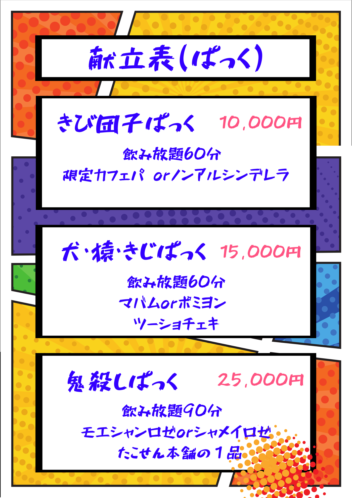 | 特典・サービス | チェキ、写真が撮れる/ ポイントカードあり |